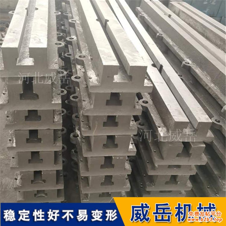 铸铁地轨的材质为强度铸铁HT200-300,工作面硬度为HB170-240,经过两次人工处理(人工退火600度-700度和自然时效2-3年)使该产品的精度稳定,耐磨性能好。可根据需方图纸制作或双方商定生产加工。