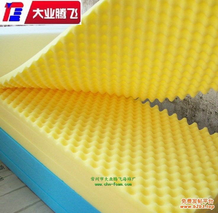 常州市大业腾飞海绵厂,专业发泡:波峰消音海绵。引进先进的生产切割,电脑数控海绵机械设备;将经复杂工艺发泡而成的消音、吸音、隔音、减震海绵材料处理形成一面凹凸波浪、类似层层叠叠山峰或是鸡蛋托、金字塔等形状。并根据市场不同行业产品需求,品种有:聚氨酯,聚乙烯,橡塑,纳米等不同材质的消音隔音海绵,产品远销,欧美,日本等世界各地。