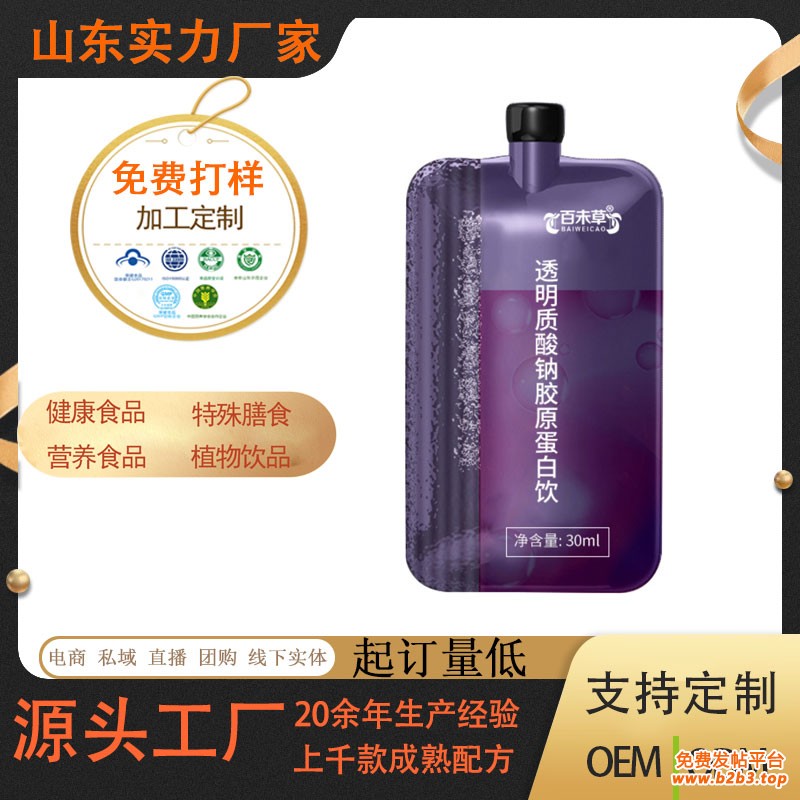 批发定制 透明质酸钠胶原蛋白饮 袋装 PQQ 美白口服液小分子活性肽饮