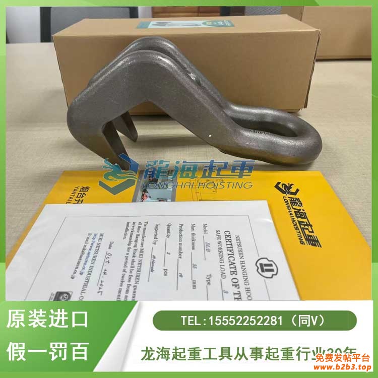 龙海起重工具有限公司自2011年6月开始销售日本NETSUREN三木品牌产品,产品拥有ISO 9001认证、产品检测报告以及品质保证证书,其中日本NETSUREN三木起重吊钩DL型在规定负荷以上可承受265万次(2,650,000次)循环加载,因此可确保长期稳定使用,保证原装进口、假一罚百!