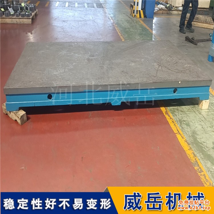 4、地脚螺栓(组成:头部和螺杆组成)安装:铸铁平台根据用户的要求设计安装方式,地脚螺栓安装。铸铁平台又称铸铁平台,外观基本上是箱体式,工作面有长方形、正方形、圆形等,材料为HT200-300,QT400-600,采用刮研工艺,工作面上可加工V形、T形、U形槽、燕尾槽、圆孔、长孔等,是用于工件、设备检测、划线、装配、铸铁、组装、铆焊的平面基准量具