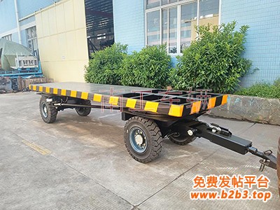 8吨双牵引同轨迹联动平板拖车南工车辆长期非标订制,采用实心轮胎,免维护,几台平板拖车连续牵引行走,平板拖车从0.5吨到120吨位都可订制。